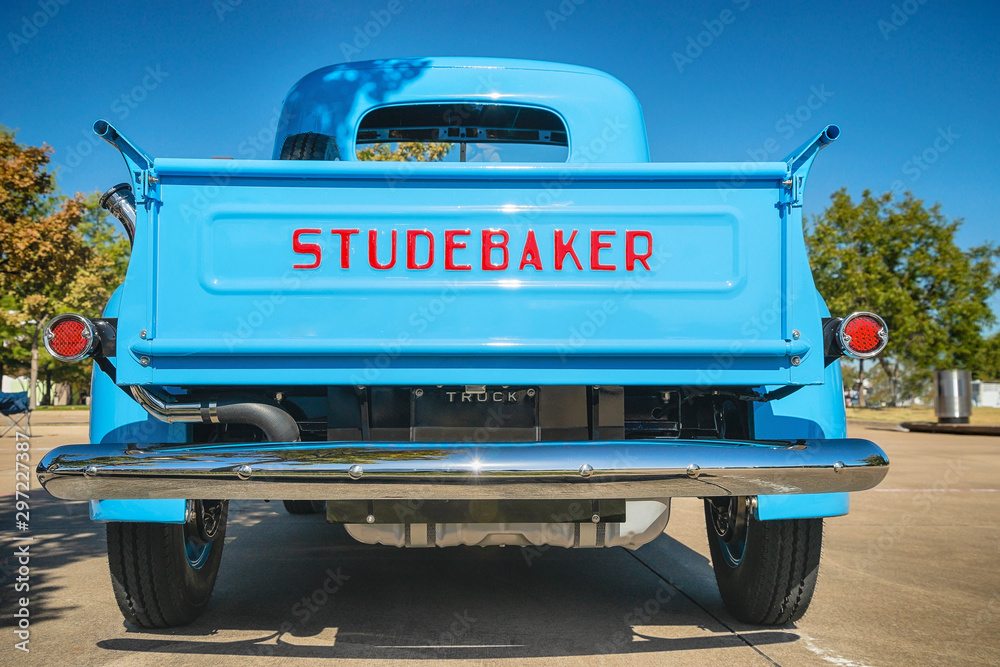 Back Side View Of A Light Blue Color Vintage Studebaker Pickup Truck Classic Car On October 19 2019 In Westlake Texas Stock Photo Adobe Stock
